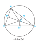 Cho ba điểm A, B, C nằm trên đường tròn tâm O và các điểm M, N, P như Hình 4.54. Hãy chỉ ra ba cặp tam giác vuông bằng nhau trong hình.