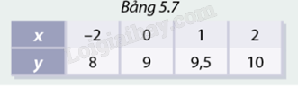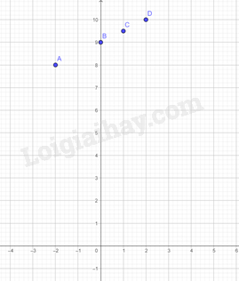 a)     Tập hợp các cặp giá trị tương ứng của  \(x\) và \(y\) là: \(A = \left( { – 2;8} \right),B = \left( {0;9} \right),C = \left( {1;9,5} \right),D = \left( {2;10} \right)\).
