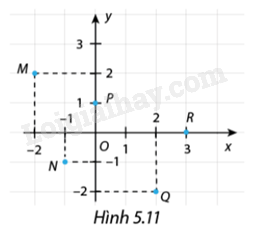b)    Ta có tọa độ các điểm \(M,N,P,Q,R\) là: \(M\left( { – 2;2} \right),N\left( { – 1;1} \right),P\left( {0;1} \right),Q\left( {2; – 2} \right),R\left( {3;0} \right)\)