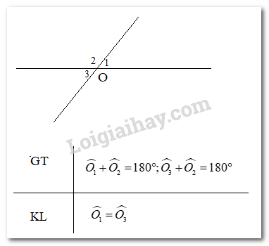 Giả sử \(\widehat {{O_1}},\widehat {{O_3}}\) cùng bù với góc \(\widehat {{O_2}}\). Ta được: