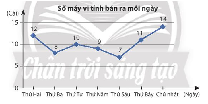 Một cửa hàng thống kê lại số máy vi tính họ bán được từ ngày thứ Hai đến Chủ nhật trong một tuần. Kết quả được trình bày ở biểu đồ sau: