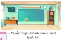 Hình 15 mô tả một phần của phòng học. Nếu coi bức tường chứa bảng và sàn nhà là hình ảnh của hai mặt phẳng thì giao của hai mặt phẳng đó là gì?