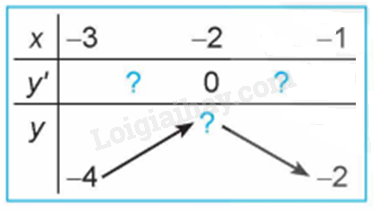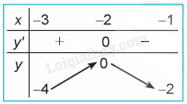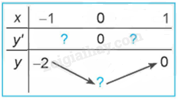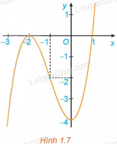 Quan sát đồ thị của hàm số \(y = {x^3} + 3{x^2} – 4\) (H.1.7). Xét dấu đạo hàm của hàm số đã cho và hoàn thành các bảng sau vào vở:
