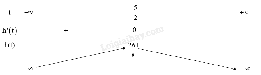 Hàm số đạt cực đại tại \(t = \frac{5}{2}\),