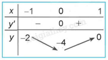 Hàm số đạt cực tiểu tại \(x = 1\) và \({y_{CT}} = y\left( 1 \right) = 1\).
