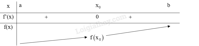 Giả sử hàm số \(y = f\left( x \right)\) liên tục trên khoảng (a; b) chứa điểm \({x_0}\) và có đạo hàm trên các khoảng \(\left( {a;{x_0}} \right)\) và \(\left( {{x_0};b} \right)\). Nếu f’(x) không đổi dấu qua \({x_0}\) thì: