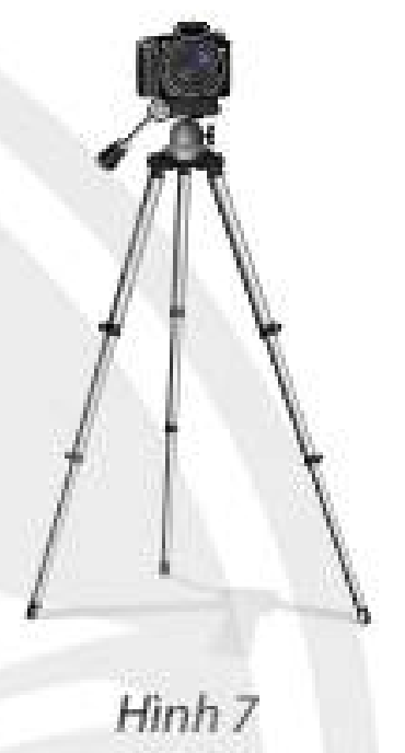 Quan sát Hình 7 và cho biết giá đỡ máy ảnh tiếp đất tại mấy điểm. Tại sao giá đỡ máy ảnh thường có ba chân?