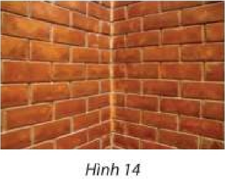 Quan sát Hình 14 và mô tả phần giao nhau của hai bức tường.
