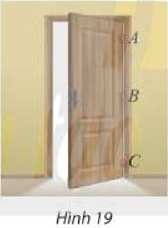 Tại sao muốn cánh cửa đóng mở được êm thì các điểm gắn bản lề \(A,B,C\) của cánh cửa và mặt tường (Hình 19) phải cùng nằm trên một đường thẳng?
