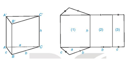 \( \Rightarrow \) Tổng diện tích các hình chữ nhật (1), (2), (3)  =  tích của chu vi đáy với chiều cao của hình lăng trụ đứng