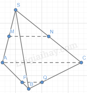 Cho hình chóp S.ABC. Gọi M, N lần lượt là trung điểm của các đoạn thẳng SA, SC. Lấy các điểm P, Q lần lượt thuộc các đoạn thẳng AB, BC sao cho \(\frac{{BP}}{{BA}} = \frac{{BQ}}{{BC}} = \frac{1}{3}\). Chứng minh rằng MN song song với PQ.