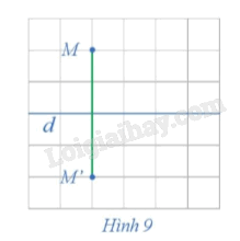 Trong mặt phẳng cho đường thẳng d. Với mỗi điểm M trong mặt phẳng và M ∉ d, hãy xác định điểm M’ sao cho d là đường trung trực của đoạn thẳng MM’ (hay M’ là điểm đối xứng với M qua đường thẳng d) (Hình 9).