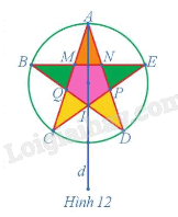 Ảnh của cánh sao màu vàng có các đỉnh D, I, P qua phép đối xứng trục d trong Hình 12 là cánh sao màu vàng có các đỉnh C, I, Q.