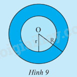 a) Vẽ đường tròn (C) tâm O bán kín r = 5 cm và đường tròn (C’) tâm O bán kính R = 8 cm. b) Tính diện tích S của (C) và diện tích S’ của (C’). c) Hãy cho biết hiệu số (S’ – S) biểu diễn diện tích của phần nào trên Hình 9.