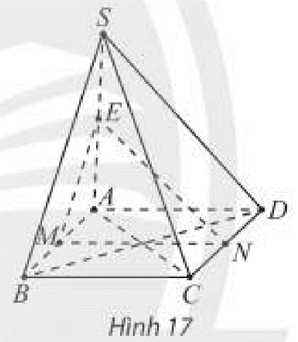 Cho hình chóp \(S.ABCD\) có đáy \(ABCD\) là hình bình hành và \(M,N,E\) lần lượt là trung điểm của các đoạn thẳng \(AB,CD,SA\) (Hình 17). Chứng minh rằng:
