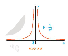 Xét hàm số \(f\left( x \right) = \frac{1}{{{x^2}}}\) có đồ thị như Hình 5.6. Cho \({x_n} = \frac{1}{n}\), chứng tỏ rằng \(f\left( {{x_n}} \right) \to  + \infty \)