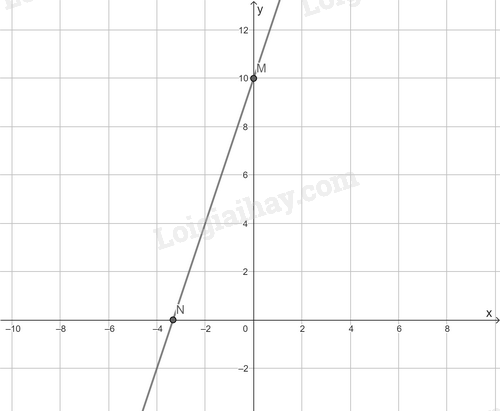 Cho \(y = 0 \Rightarrow x = \dfrac{{ – 10}}{3}\) ta được điểm \(N\left( {\dfrac{{ – 10}}{3};0} \right)\) trên \(Ox\).