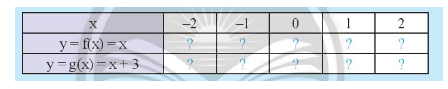Cho hàm số \(y = f\left( x \right) = x\) và \(y = g\left( x \right) = x + 3\)