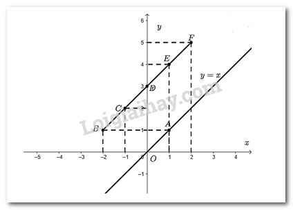 – Các điểm có tọa độ thỏa mãn hàm số \(y = g\left( x \right)\) trong bảng trên là \(B\left( { – 2;1} \right);C\left( { – 1;2} \right);D\left( {0;3} \right);E\left( {1;4} \right);F\left( {2;5} \right)\).