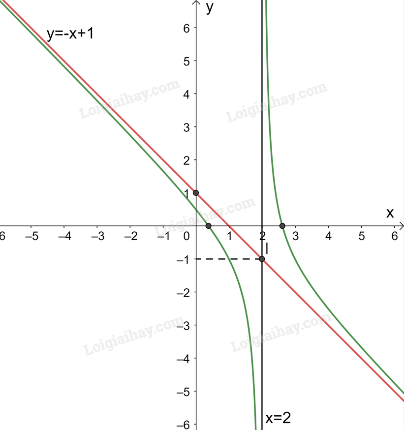 Do đó, đồ thị hàm số nhận đường thẳng \(x = 2\) làm tiệm cận đứng và đường thẳng \(y =  – x + 1\) làm tiệm cận xiên.