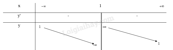 Tập xác định: \(D = \mathbb{R}\backslash \{ 1\} \)