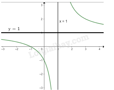 \(\mathop {\lim }\limits_{x \to {1^ + }} y = \mathop {\lim }\limits_{x \to {1^ + }} \frac{{x + 1}}{{x – 1}} =  + \infty ;\mathop {\lim }\limits_{x \to {1^ – }} y = \mathop {\lim }\limits_{x \to {1^ – }} \frac{{x + 1}}{{x – 1}} =  – \infty \) nên x = 1 là tiệm cận đứng của đồ thị hàm số