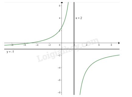 \(\mathop {\lim }\limits_{x \to  + \infty } y = \mathop {\lim }\limits_{x \to  + \infty } \frac{{5 + x}}{{2 – x}} =  – 1;\mathop {\lim }\limits_{x \to  – \infty } y = \mathop {\lim }\limits_{x \to  – \infty } \frac{{5 + x}}{{2 – x}} =  – 1\) nên y = -1 là tiệm cận ngang của đồ thị hàm số