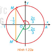 a) Quan sát Hình 1.22a, tìm các nghiệm của phương trình đã cho trong nửa khoảng (left[ { – pi ;pi } right)). b) Dựa vào tính tuần hoản của hàm số cosin, hãy viết công thức nghiệm của phương trình đã cho.
