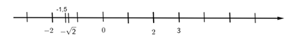 Hãy biểu diễn các số thực: \( – 2;\,\, – \sqrt 2 ;\, – 1,5;\,\,2;\,3\) trên trục số.