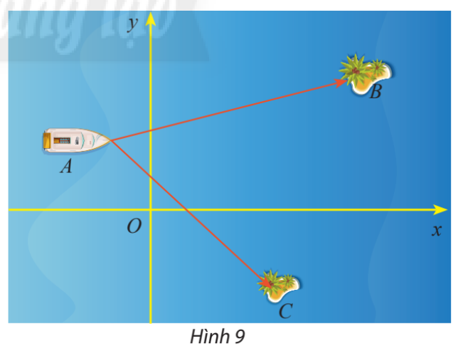 Khoảng cách từ tàu đến đảo B là \(AC = \left| {\overrightarrow {AC} } \right| = \sqrt {{{42}^2} + {{\left( { – 43} \right)}^2}}  = \sqrt {3613} \) (km)