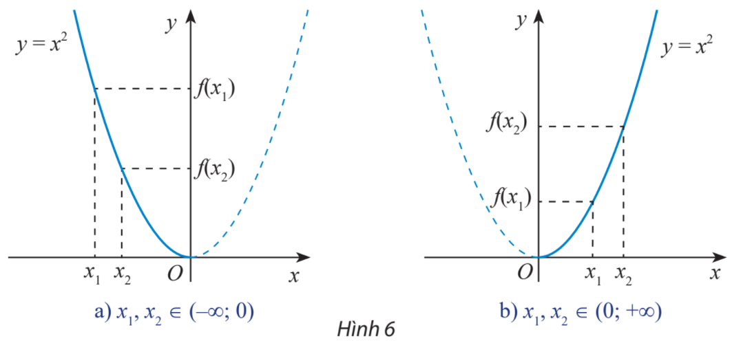 Quan sát đồ thị hàm số y = f(x) = {x^2} rồi so sánh f(x1) và f(x2) (với x1 < x2) trong từng trường hợp sau: a) Tìm khoảng đồng biến và nghịch biến của hàm số có đồ thị sau: