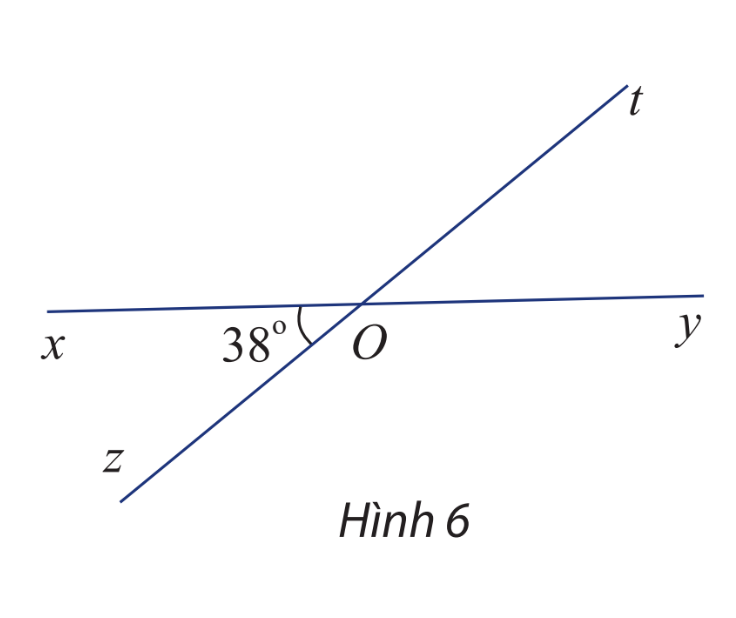 Cho hai đường thẳng xyzt cắt nhau tại O và cho biết \(\widehat {xOz} = 38^\circ \) (hình 6)