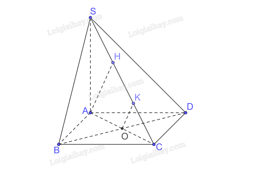 \(\begin{array}{l}OK \bot BD\left( {BD \bot \left( {SAC} \right)} \right)\\ \Rightarrow d\left( {SC,BD} \right) = OK\end{array}\)