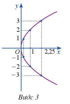 Bước 3: Vẽ đường parabol bên phải trục Oy, đỉnh O, trục đối xứng là Ox, parabol đi qua các điểm được vẽ ở Bước 2