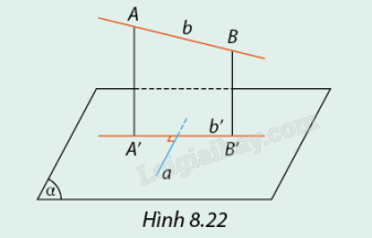 Cho đường thẳng \(b\) không nằm trong mặt phẳng \(\left( \alpha  \right)\) và không vuông góc với \(\left( \alpha  \right)\). Gọi \(A,B\) là hai điểm phân biệt trên \(b\) và \(A’,B’\) lần lượt là hình chiếu của \(A,B\) trên \(\left( \alpha  \right)\). Gọi \(b’\) là đường thẳng đi qua \(A’,B’\) thì \(b’\) là hình chiếu vuông góc của \(b\) trên mặt phẳng \(\left( \alpha  \right)\). Xét \(a\) là một đường thẳng nằm tròn \(\left( \alpha  \right)\).