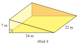 Để thi công một con dốc, người ta đúc một khối bê tông hình lăng trụ đứng tam giác có kích thước như Hình 8. Hãy tính thể tích khối bê tông.