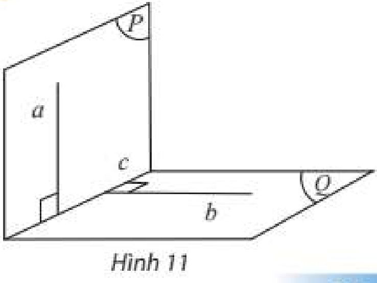 Cho đường thẳng \(a\) vuông góc với mặt phẳng \(\left( Q \right)\). Mặt phẳng \(\left( P \right)\) chứa \(a\) và cắt \(\left( Q \right)\) theo giao tuyến \(c\). Trong \(\left( Q \right)\) ta vẽ đường thẳng \(b\) vuông góc với \(c\).