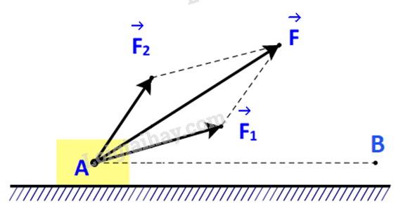 \({A_1} + {A_2} = \overrightarrow {{F_1}} .\overrightarrow {AB} + \overrightarrow {{F_2}} .\overrightarrow {AB} = \left( {\overrightarrow {{F_1}} + \overrightarrow {{F_2}} } \right).\overrightarrow {AB} = \overrightarrow F .\overrightarrow {AB} = A\)