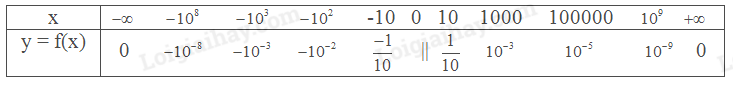 Vậy \(\mathop {\lim }\limits_{x \to  – \infty } f(x) =  – 1\) và \(\mathop {\lim }\limits_{x \to  + \infty } f(x) = 1\).