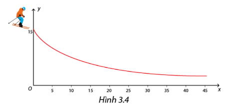Vận động viên sẽ xuất phát từ vị trí (0; 15)  cao 15 m so với mặt đất (trục 0x) . Đường trượt phải thỏa mãn yêu cầu là càng ra xa thì càng gần mặt đất để tiết kiệm lượng tuyết nhân tạo. Một nhà thiết kế đề nghị  sử dụng đường cong là đồ thị \(y = f(x) = \frac{{150}}{{x + 10}}\) với \(x \ge 0\). Hãy kiểm tra xem hàm số y=f(x) có thỏa mãn các điều kiện dưới đây hay không: