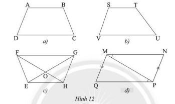 Sử dụng thước đo góc và thước đo độ dài để tìm hình thang cân trong các tứ giác ở Hình 12.