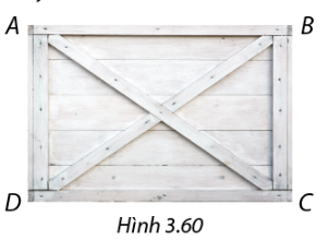 Trong Hình 3.60, mặt ABCD của thùng gỗ được gia cố bằng hai thanh gỗ AC và BD. Chỉ dùng thước đo độ dài, bác thợ mộc có thể khẳng định các góc A, B, C, D của mặt thùng đều vuông. Em hãy cho biết bác đã làm cách nào.