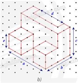 Tìm các kích thước a, b, c, d, e của chi tiết cơ khí trong Hình 24a có hình biểu diễn được vẽ trên giấy kẻ ô li là Hình 24b với quy ước mỗi cạnh của tam giác đều biểu diễn độ dài 1 cm.
