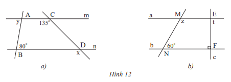 Cho biết m // n và a // b. Tính số đo x,y,z và t của các góc trong hình 12.