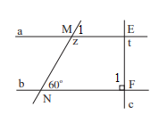 Mà \(\widehat {{M_1}} + z = 180^\circ \) ( 2 góc kề bù) nên z = 180\(^\circ \)- 60\(^\circ \)=120\(^\circ \)
