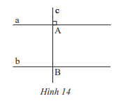 Cho hai đường thẳng a, b song song với nhau, đường thẳng c vuông góc với a tại A và cắt b tại B. Hãy giải thích tại sao đường thẳng c cũng vuông góc với b.