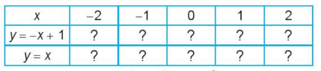 Cho hàm số \(y =  – x + 1\) và \(y = x\). Tính giá trị y theo giá trị x để hoàn thành bảng sau: