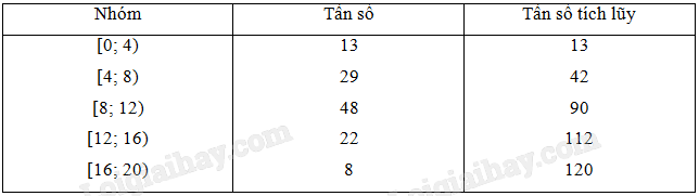 a)     Nhóm 3 là nhóm đầu tiên có tần số tích lũy lớn hơn hoặc bằng 49,5