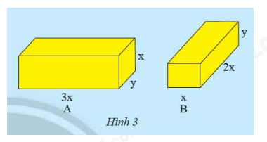 Cho hai hình hộp chữ nhật A và B có các kích thước như hình 3.