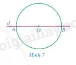 a) Vẽ đường thẳng \(d\) đi qua tâm \(O\) cắt đường tròn tại \(A,B\). So sánh \(OA\) và \(OB\) (Hình 7).